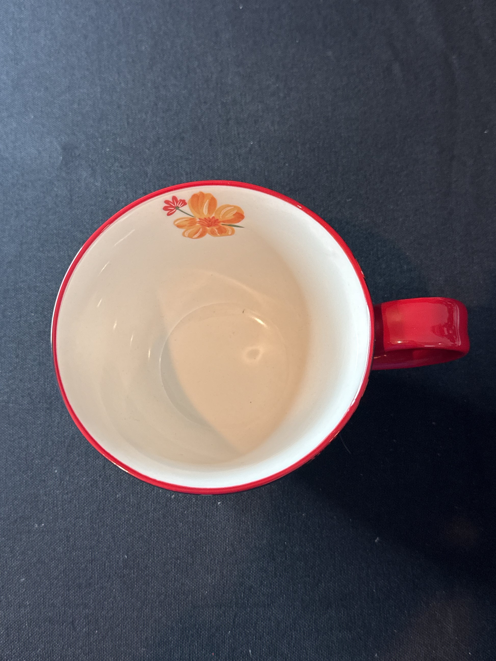 Potter's Studio Footed Coffee Cup Mug Colorful Flowers, 14oz 3 5/8" Tall New