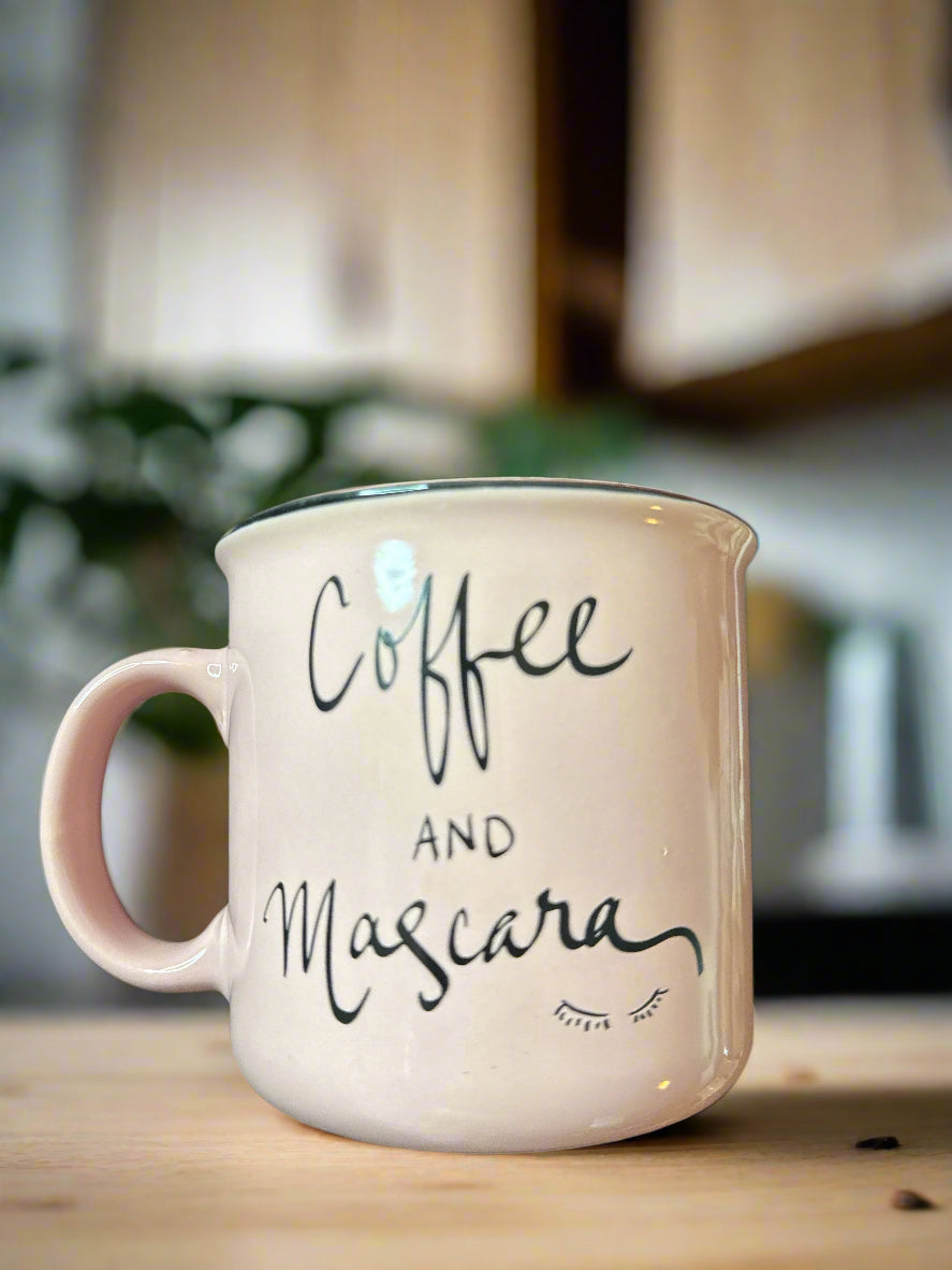 Primo Design Bright Pink Coffee & Mascara Coffee Cup/Mug 4" x 4" New. Excellent condition, no chips or cracks.