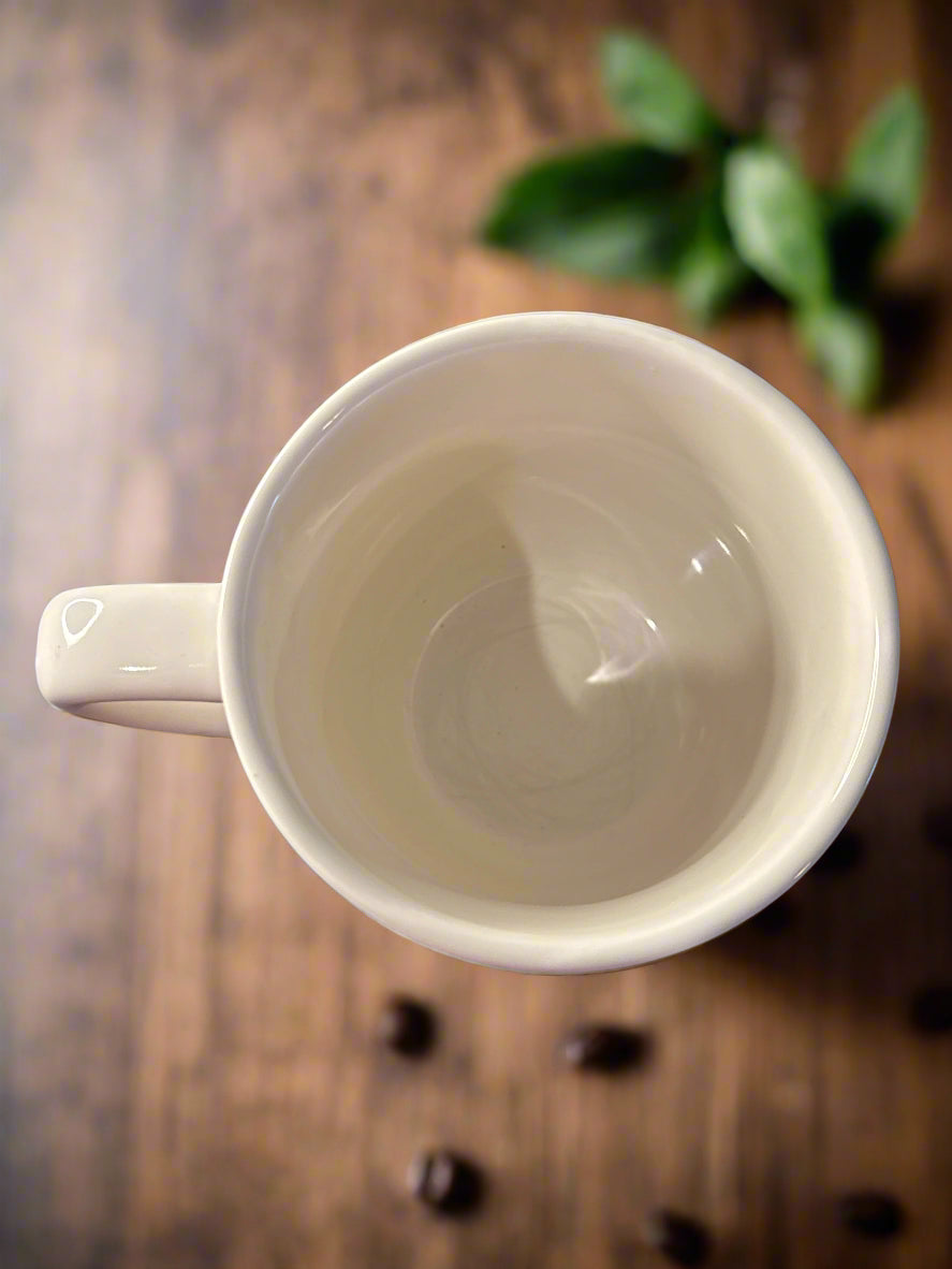 Rae Dunn Artisan Collection Have a Balanced Meal Dog Bagel Coffee Cup Mug 4.5" Tall. Very Good Used condition. Some surface scratches on bottom of mug (see pictures) from stirring. No cracks or chips.