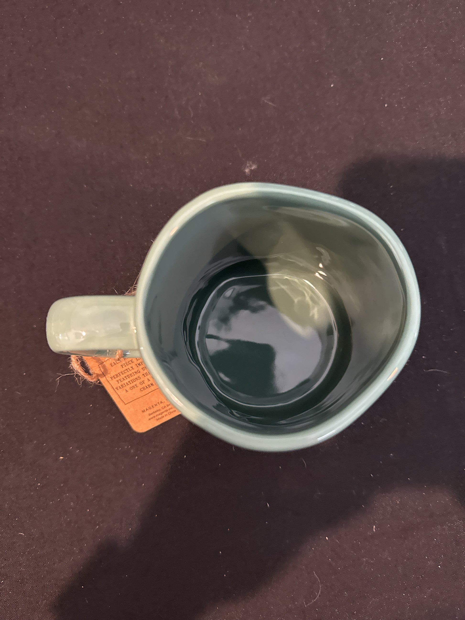 Rae Dunn Harvest Blessings Green Blue Coffee Mug Cup 4 7/8" Tall New Artisan Collection. Excellent condition, no chips or cracks. D10