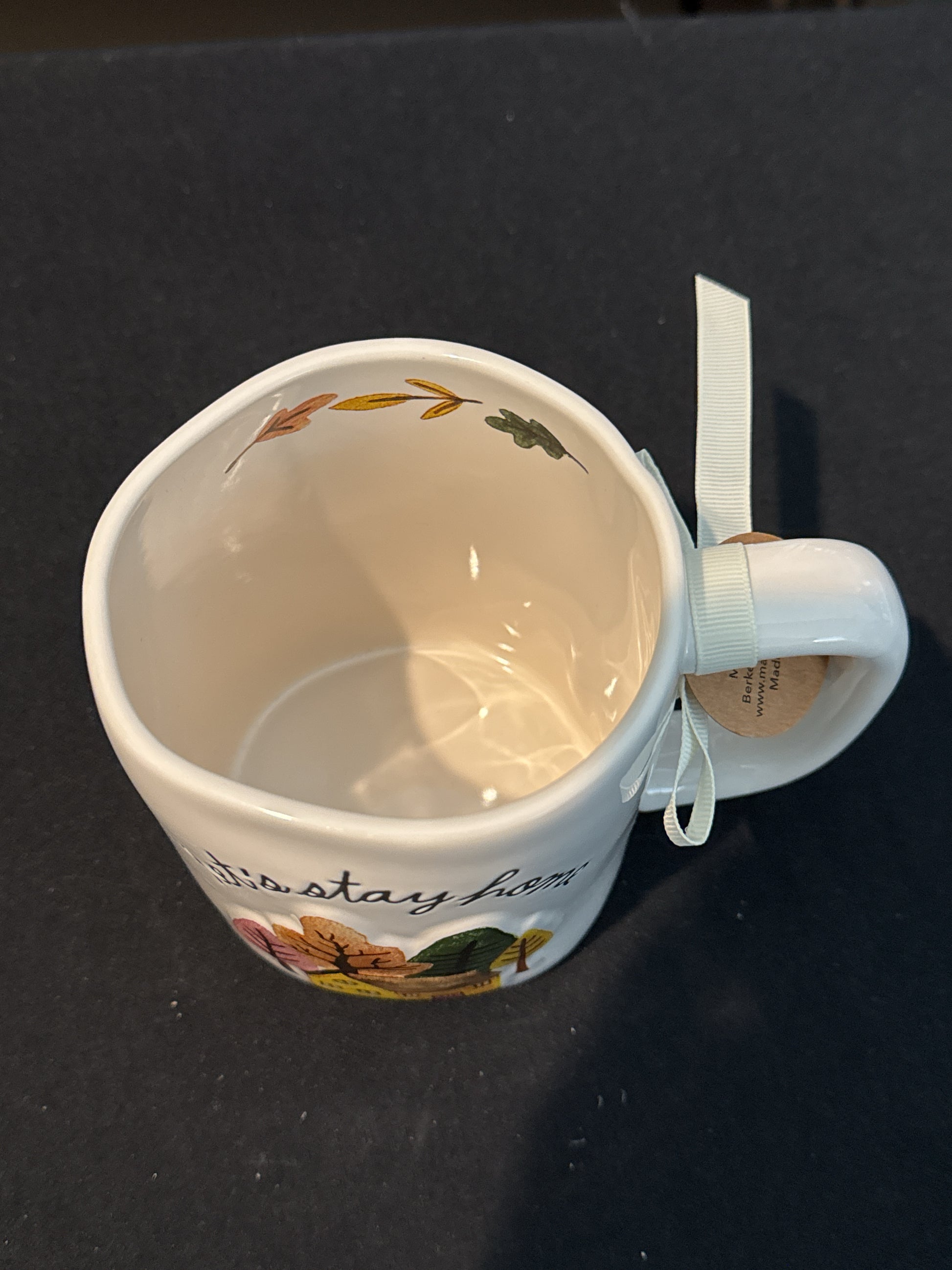 Rae Dunn Let's Stay Home Tall Coffee Mug Cup New with Tags 5" Tall. Excellent condition, no chips or cracks. D5