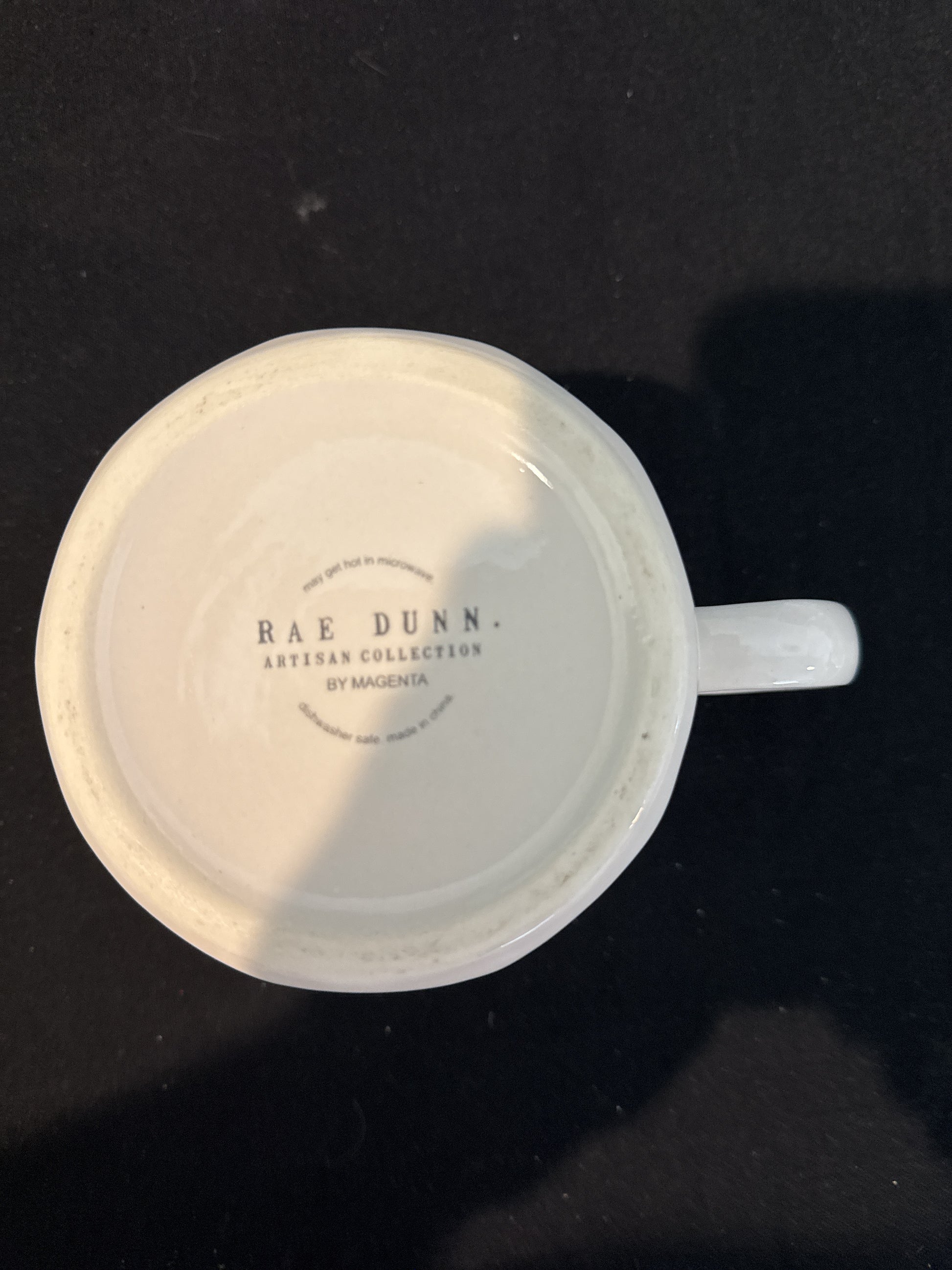 Rae Dunn THINK Magenta Ceramic Coffee Cup Mug Typewriter Font 4.25" Tall