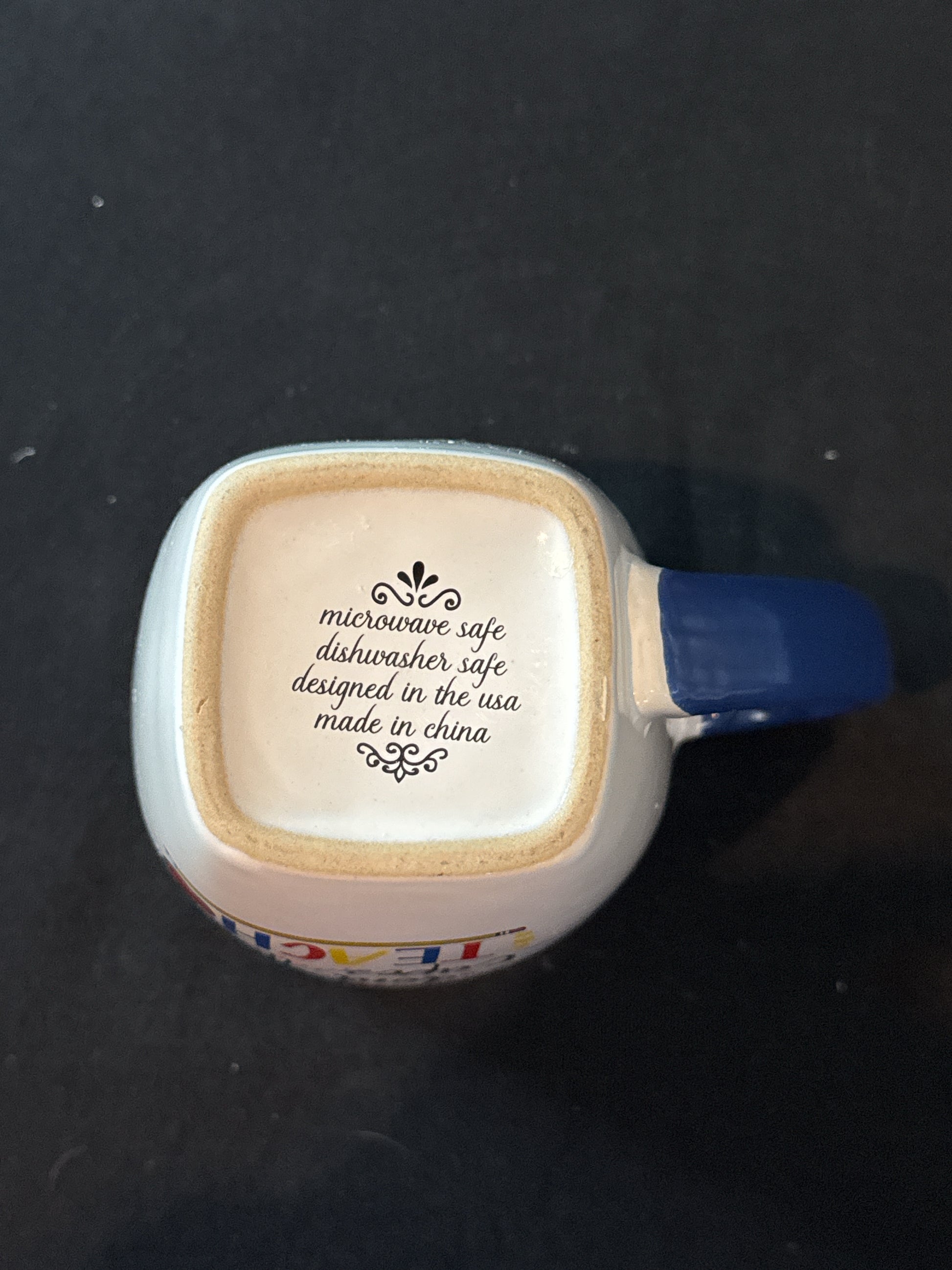 Real Heroes Don't Wear Capes, They Teach Large Coffee Cup Mug Yellow Interior 5 1/8" Tall. Excellent condition, no chips or cracks. D15