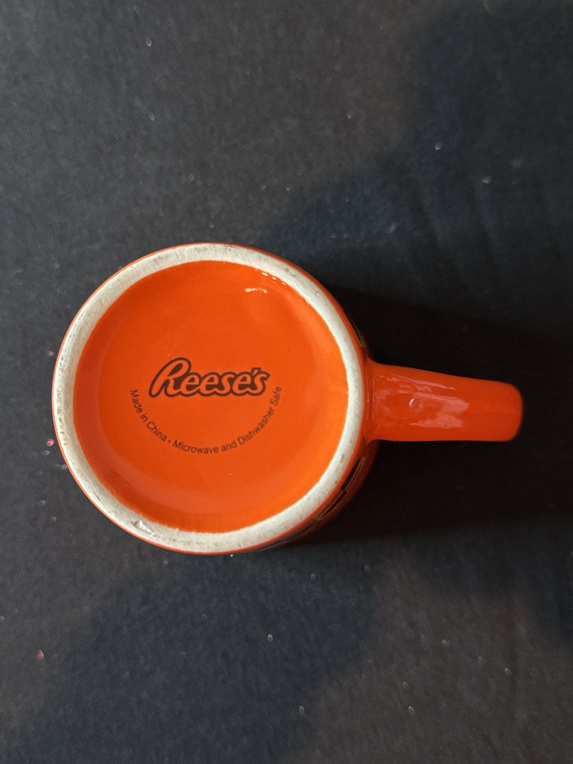 Reese's Peanut Butter Cup Original Coffee Cup Mug 4" Tall Orange Interior. Excellent condition, no chips or cracks. D20