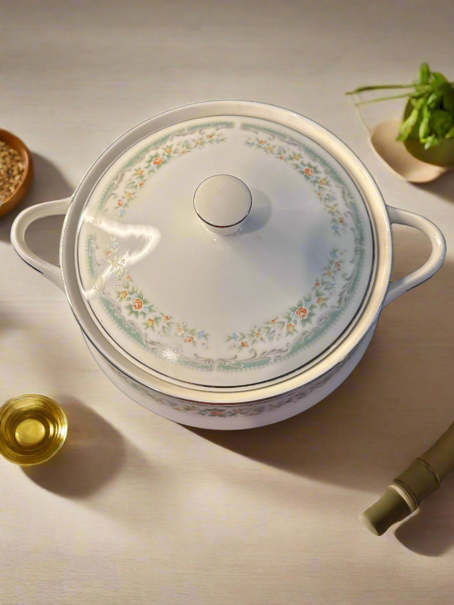 Roseville by Japan Round Covered Vegetable Bowl 8" Wide With Lids & Handles. Vintage. Excellent condition, no chips or cracks. Very minor stain on top of lid, see picture.