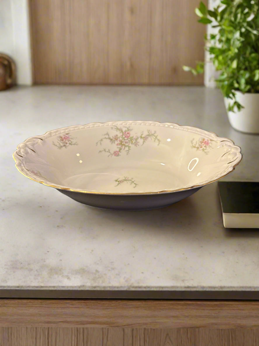 Royal Jackson Sandra Pattern 10" Oval Vegetable Bowl 10.25" Wide Gold Trim. Excellent condition, no chips or cracks. Currently have 2 in stock.