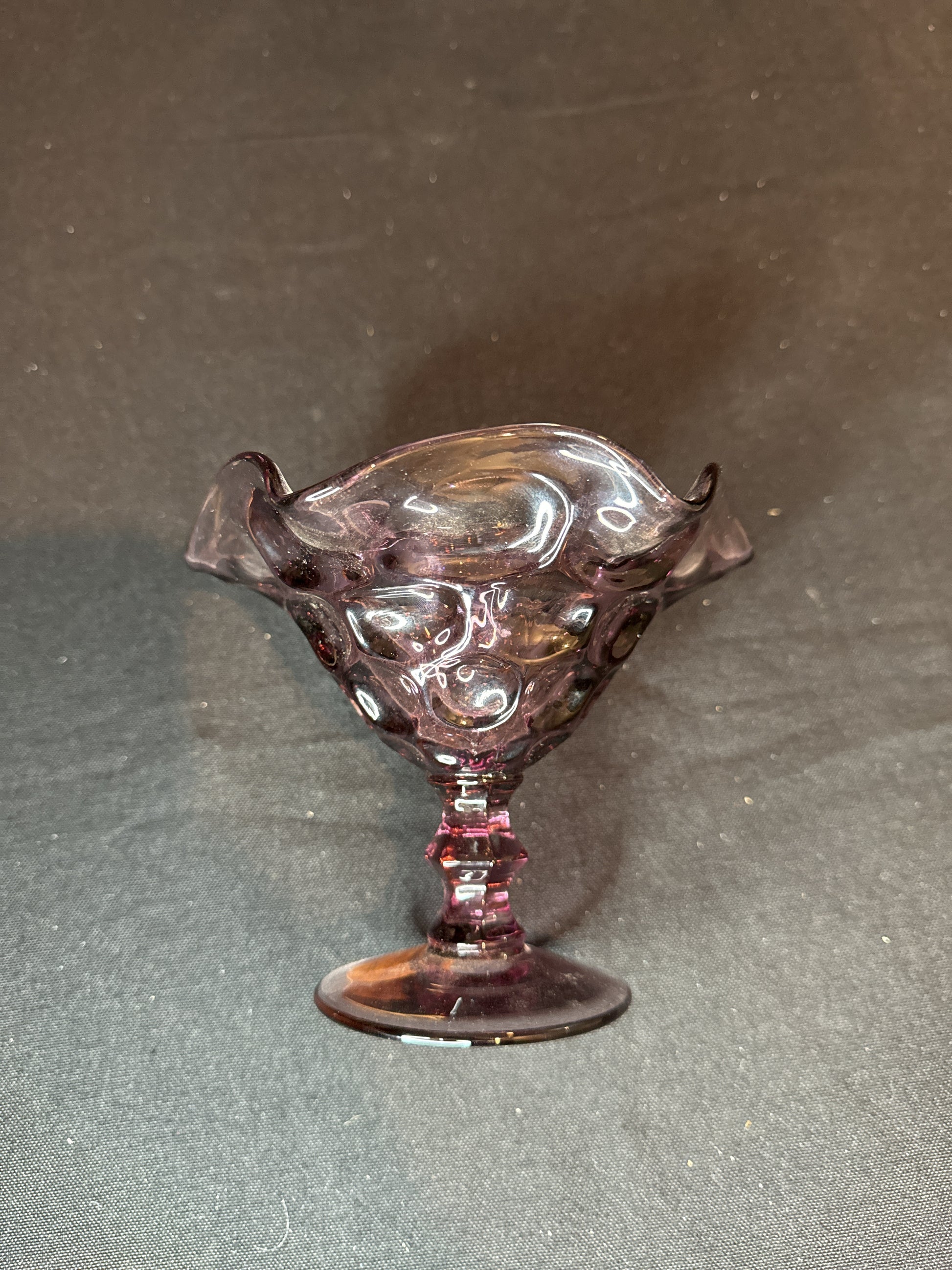 Ruffled Edge Glass Amethyst Purple Candy Dish Compote 5" Tall