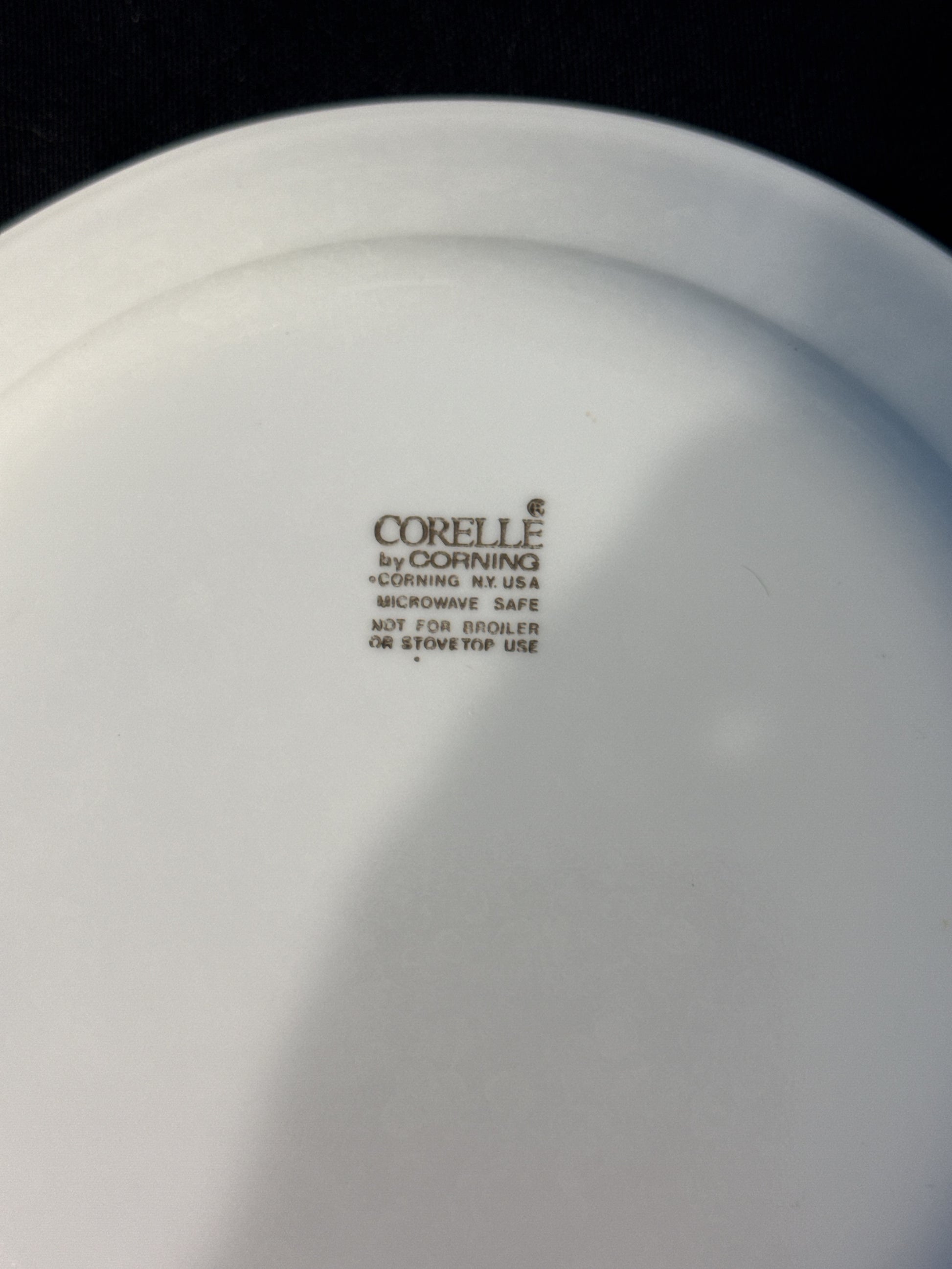 Set of 4 Corelle Queens Lace by Corning 7.25" Wide Blue and Gray Bands Gray Floral. Excellent condition, no chips or cracks.