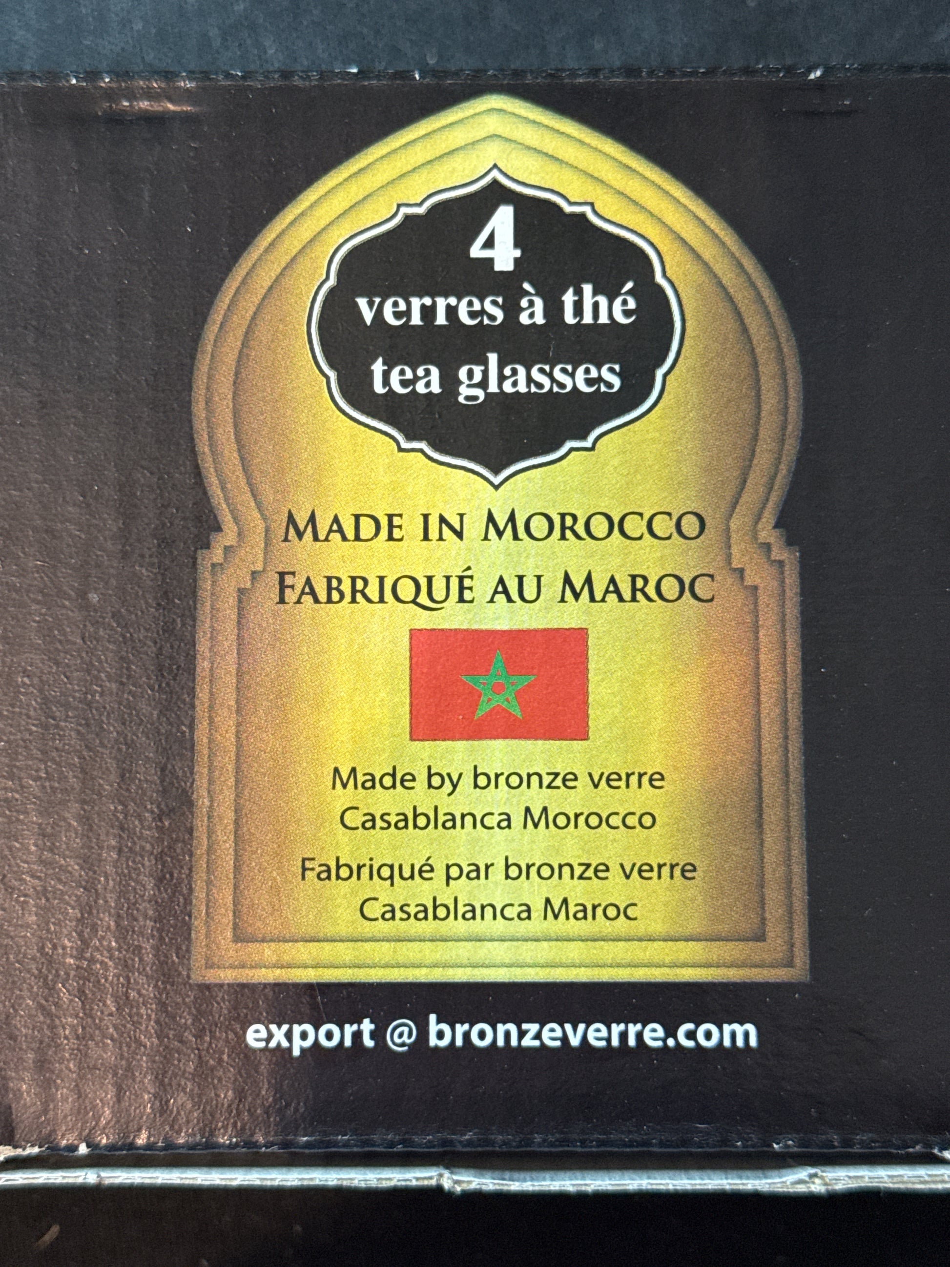 Set of 4 Moroccan Tea Glasses Red Blue Orange Green Gold 4" Tall New in Box. Excellent condition, no chips or cracks. Currently have 2 sets in stock.