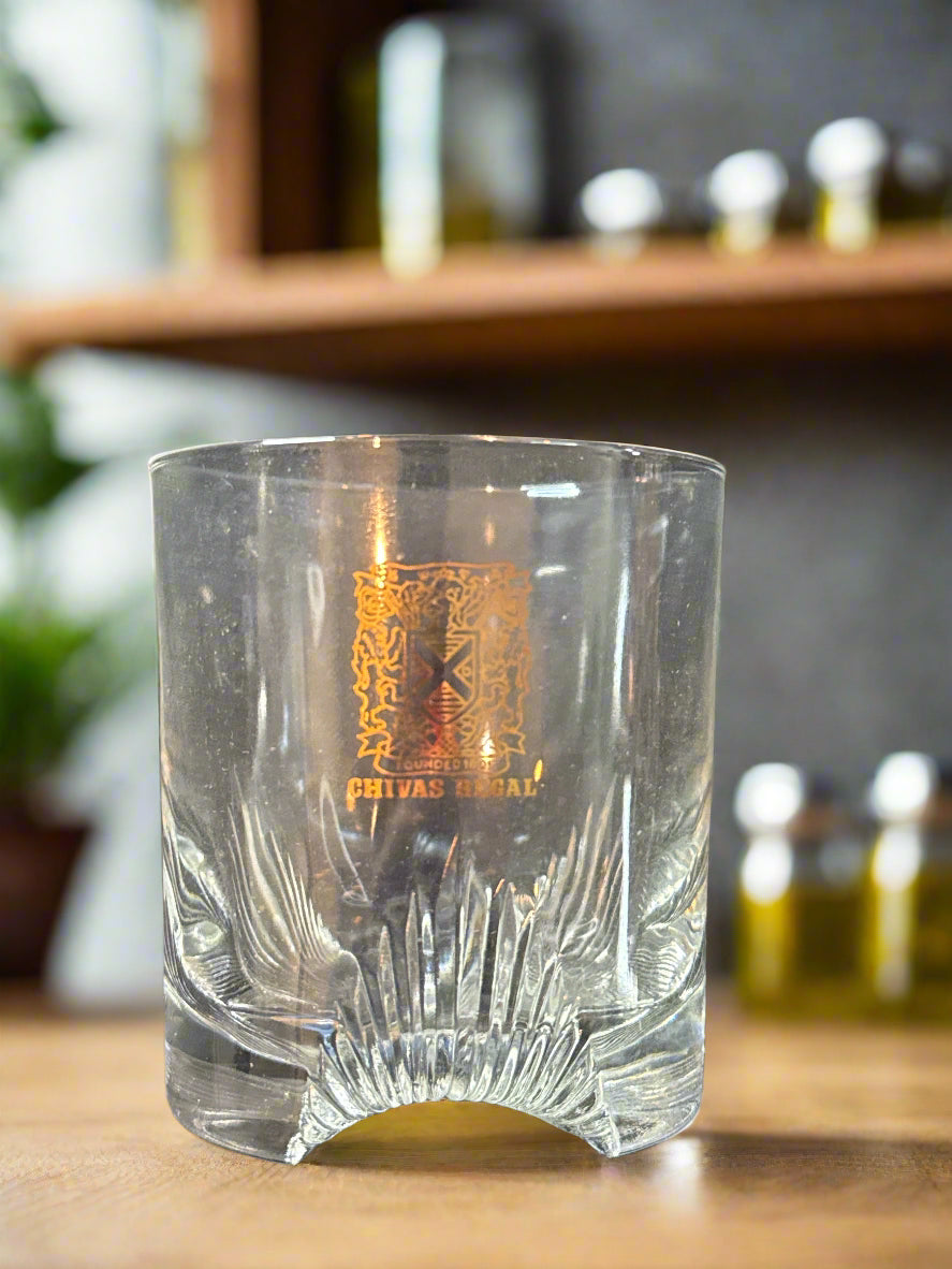 Set of 4 Vintage Chivas Regal Scotch Whiskey "Founded 1801" Rocks Glasses 8oz 3.5" Tall. All in excellent condition, no chips or cracks.