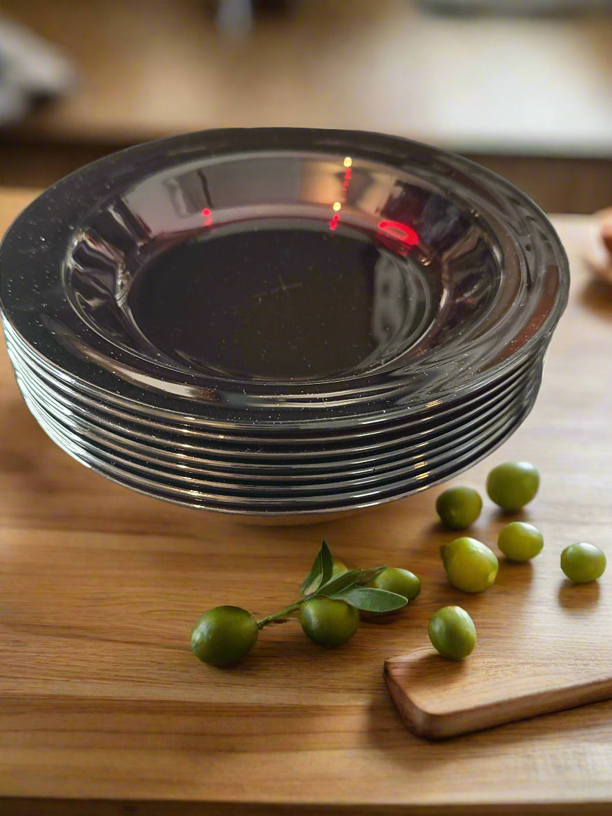 Set of 8 Ruby Red Arcoroc France Wide Rim Bowls 8.5" Wide. Excellent condition, no chips or cracks. Minor wear.