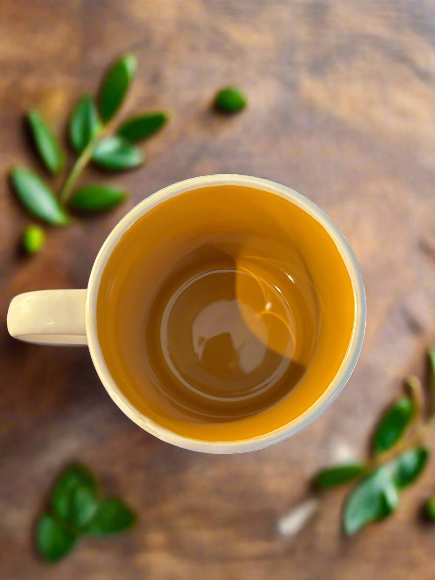 Stay Golden Girl! Coffee Cup Mug 4.5" Tall Gold Interior Hand Painted Ribbed Outside New. Excellent condition, no chips or cracks.
