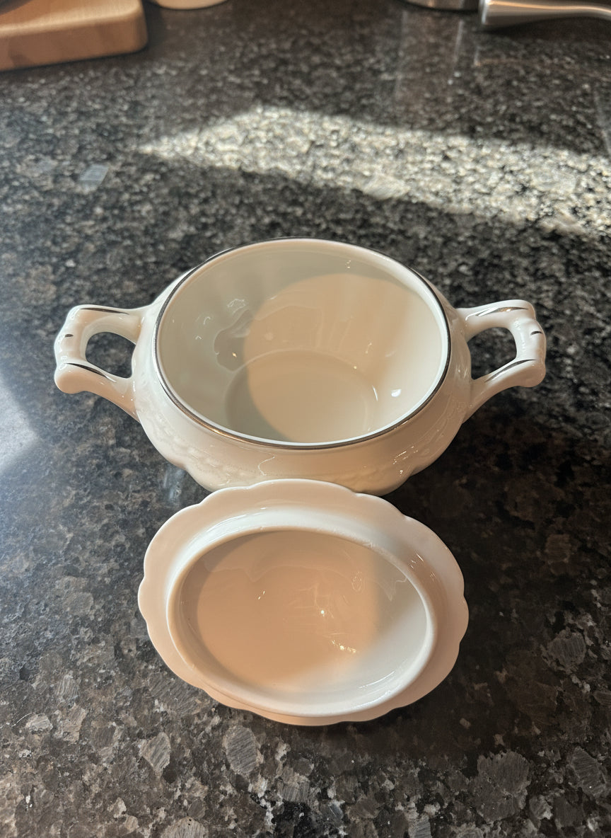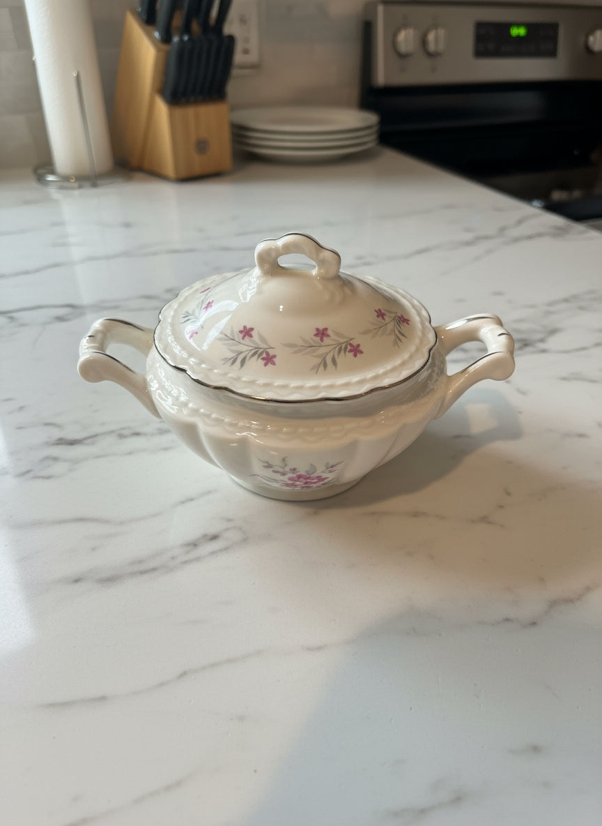 Sugar Bowl & Lid Royal Jackson Minuet (Scalloped) 7" W x 5" T. Excellent condition, no chips or cracks.