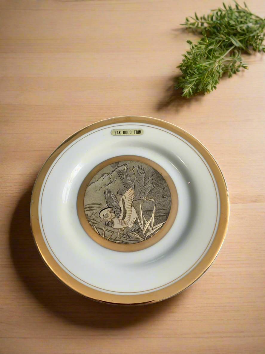 The Art of Chokin 24K Gold Trim Edged Plate Mandarin Ducks