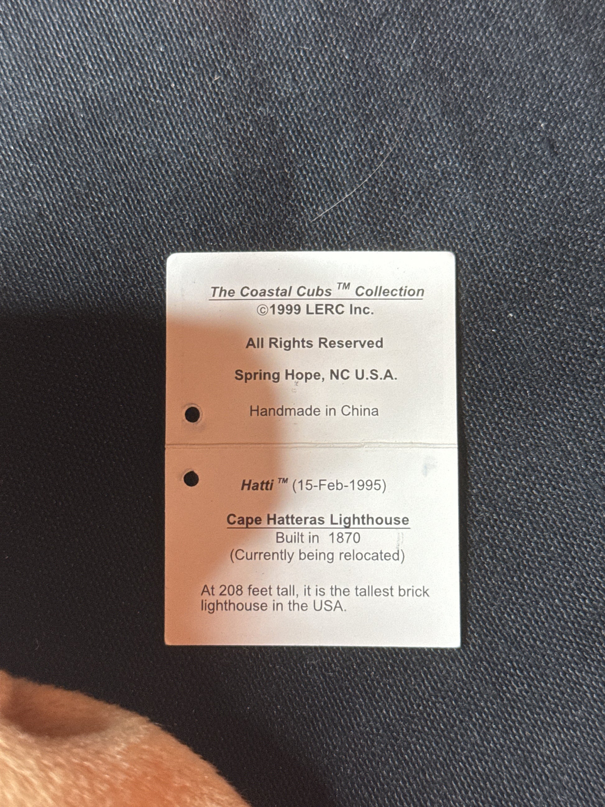 The Coastal Cubs HATTI Lighthouse Bear Beanie Plush Cape Hatteras LERC Tan 8" Tall. Excellent used condition. Not used by children.