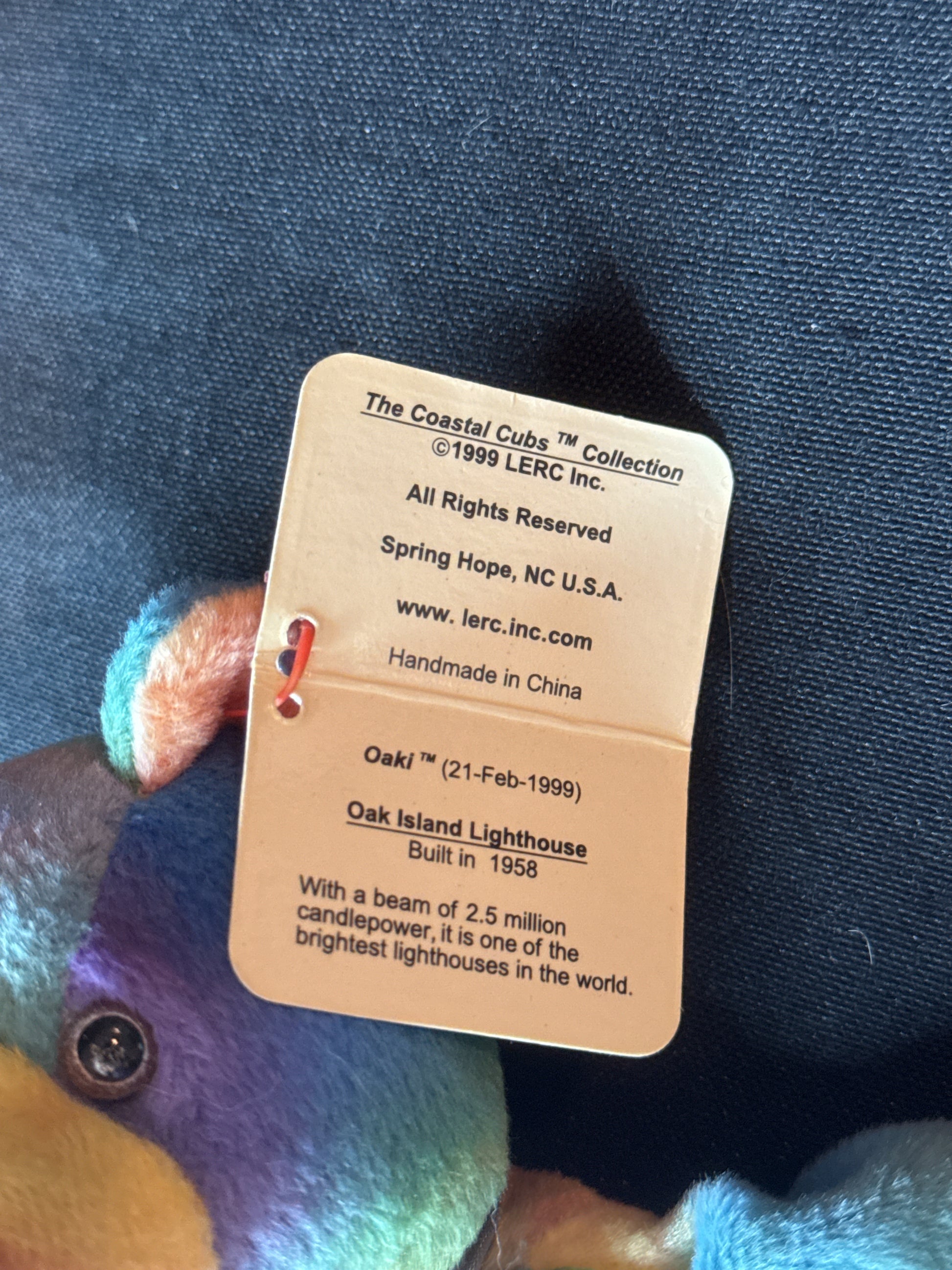 The Coastal Cubs OAKI Lighthouse Bear Beanie Plush Oak Island LERC Rainbow 8" Tall. Excellent used condition. Not used by children.