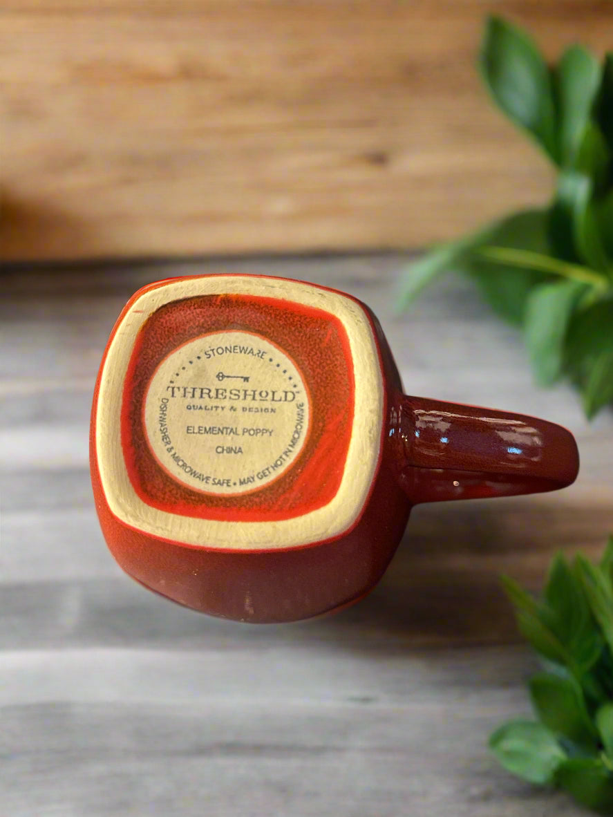 Threshold Elemental Poppy Red Brown Coffee Cup Mug 4 5/8" Tall Stoneware