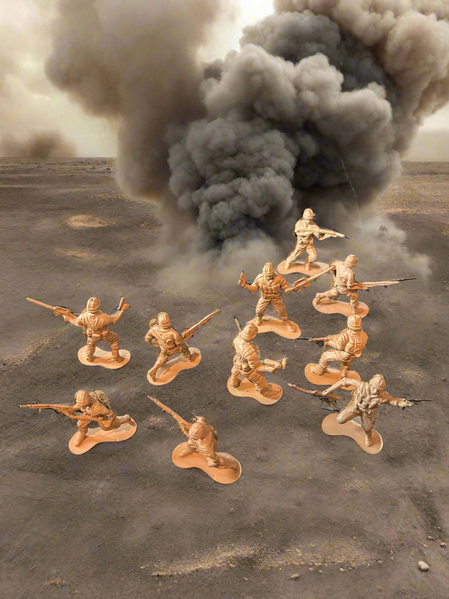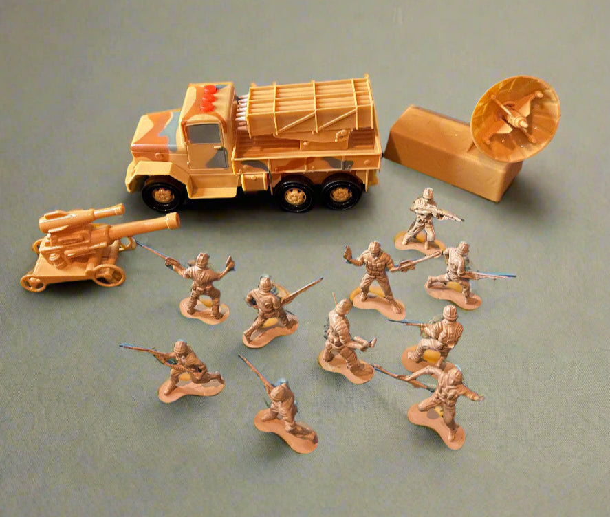 Toys R Us True Heroes Combat Truck Camo Rocket Makes Sounds Plus 10 Soldiers & Extra Pieces. Everything seen in picture comes with set. Desert camo soldiers. Truck needs 3 LR41 batteries to work.
