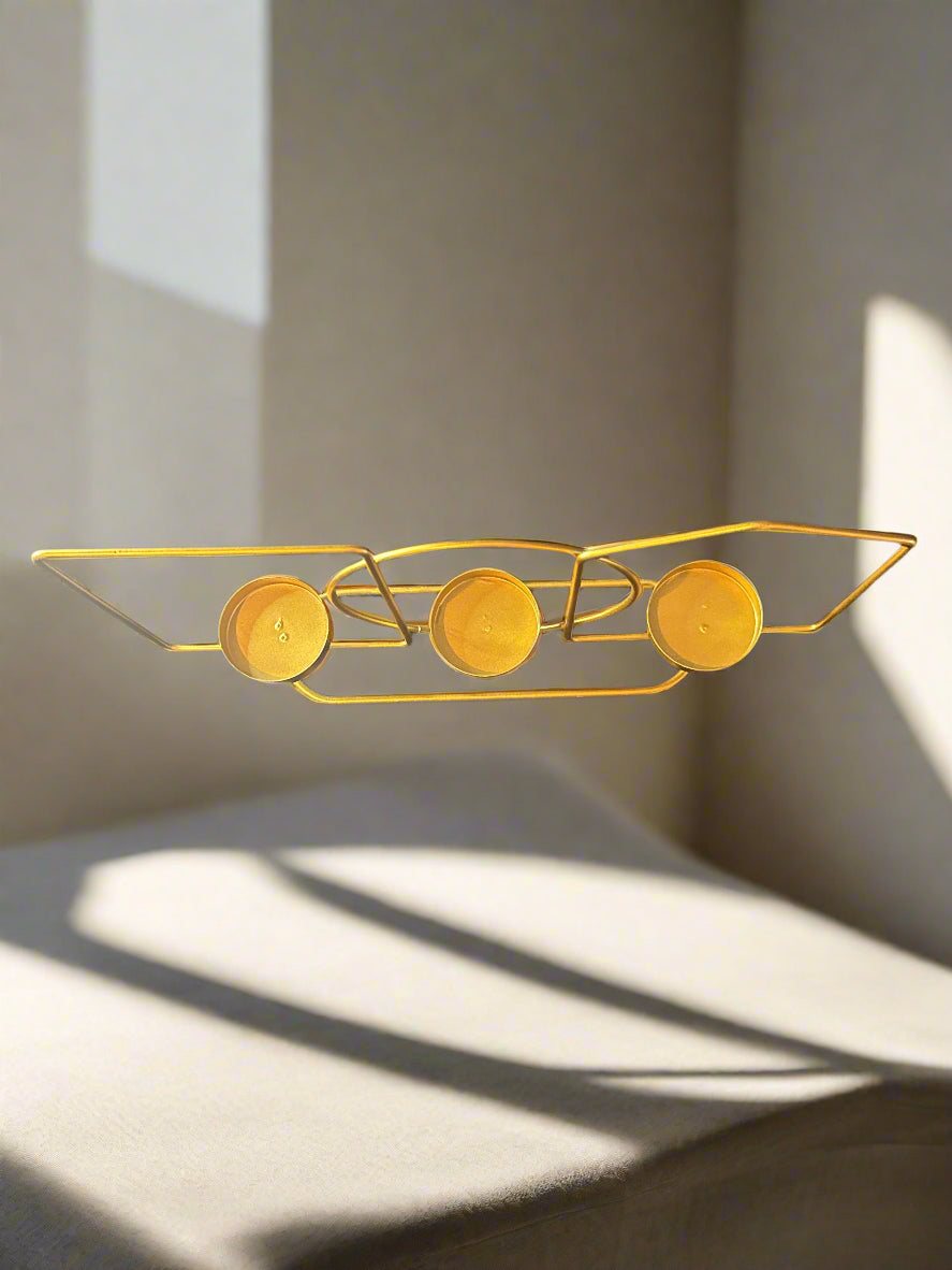 True Living Gold Metal Candle Holder Holds 3 Candles 2" Base Each