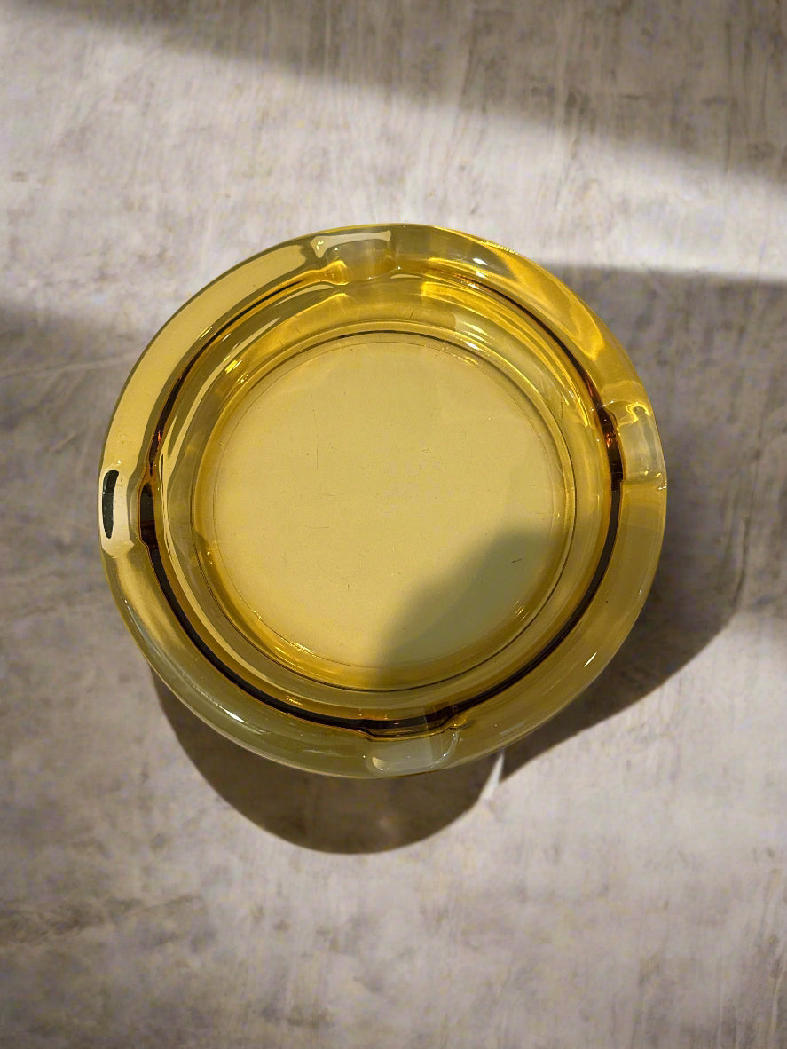 Vintage 1960s - 70s Amber Glass Round 8" Cigar Ashtray Tobacco Retro Clean. Excellent condition, superficial marks from use, but no chips or cracks.