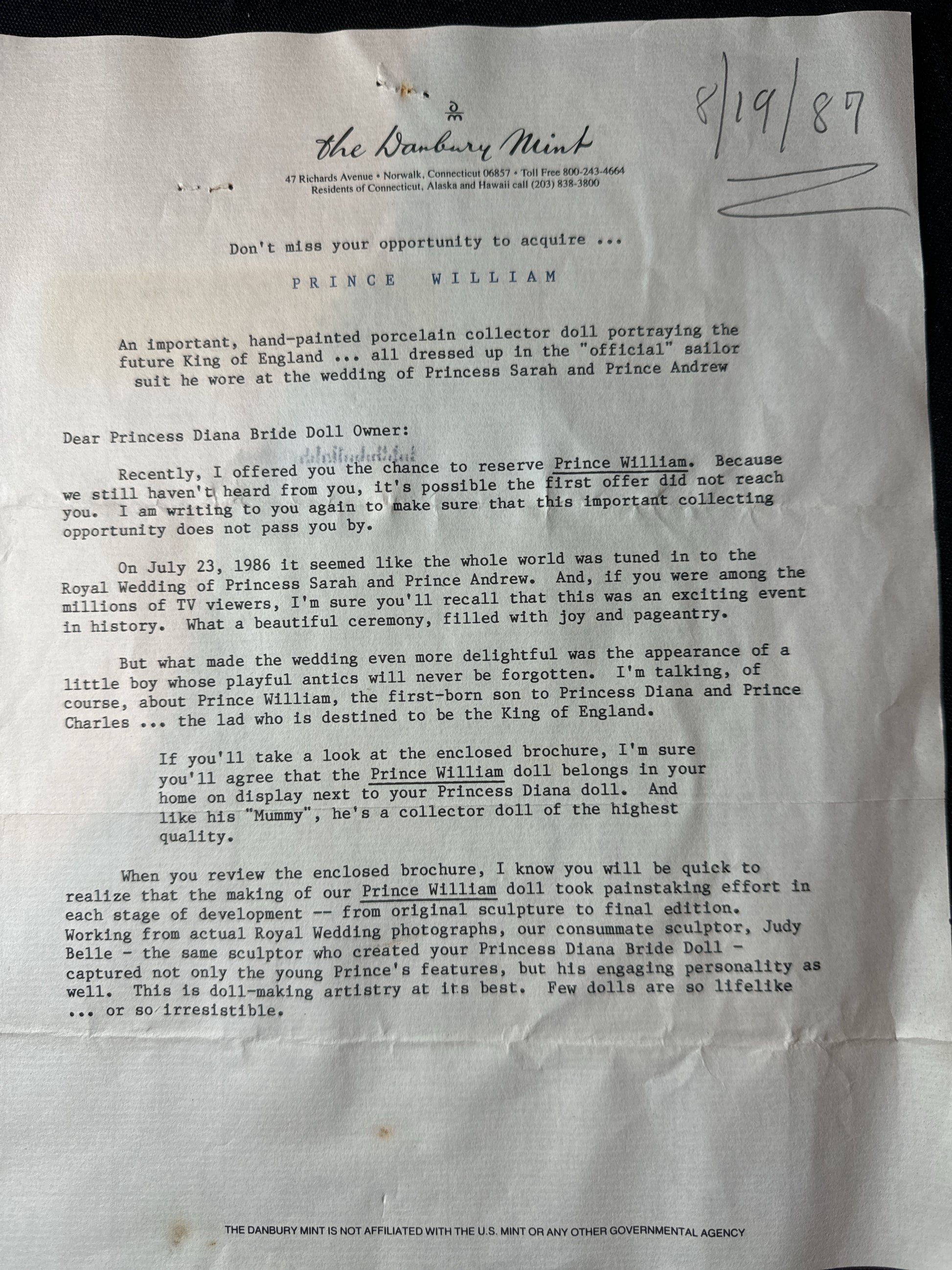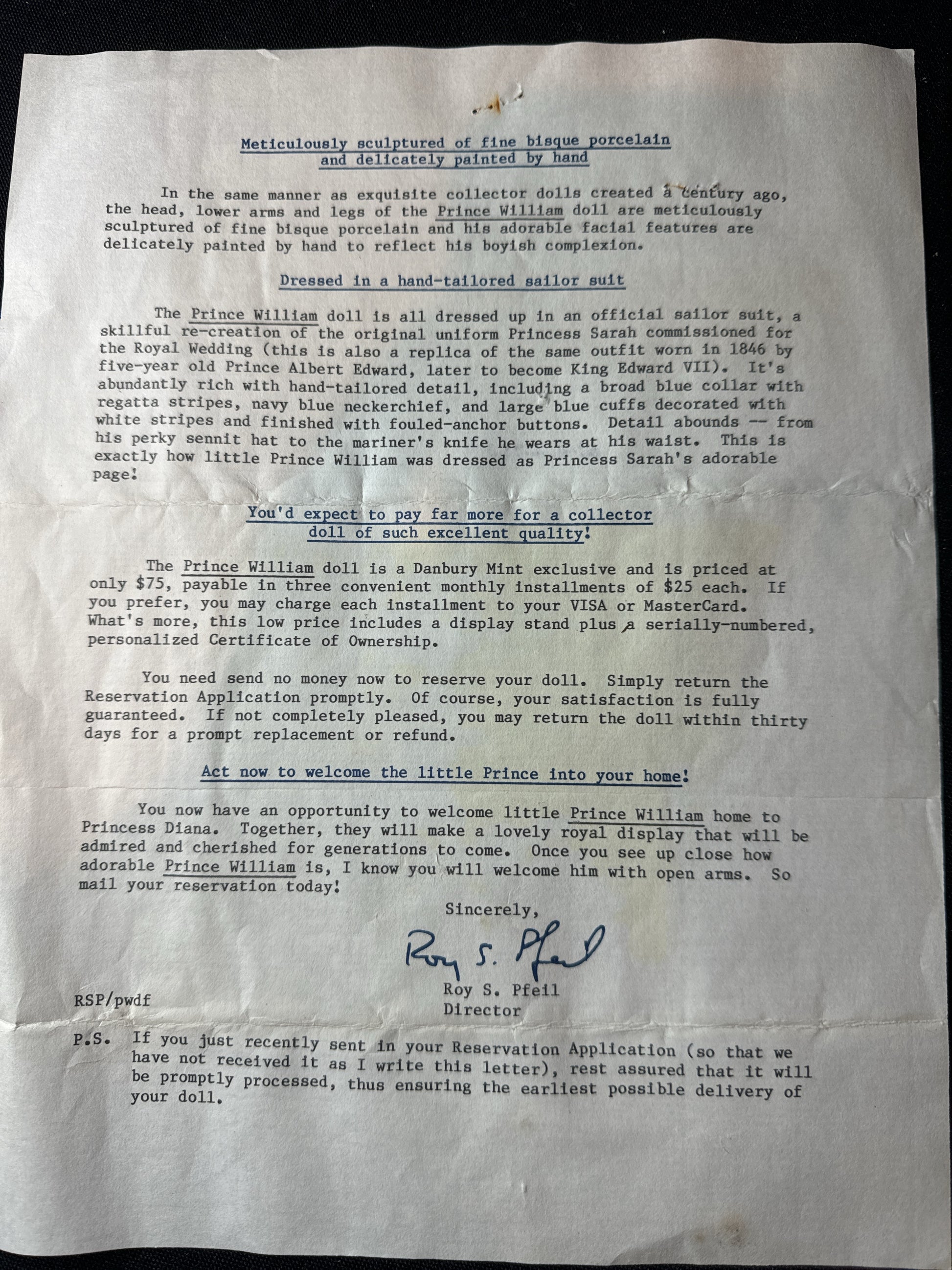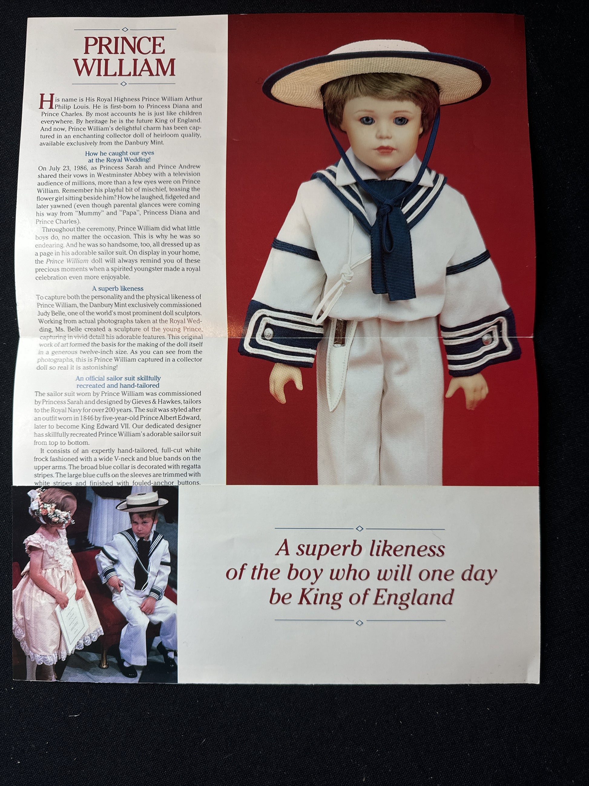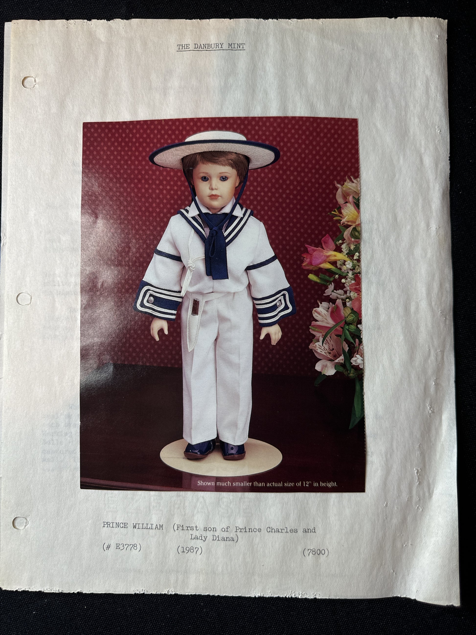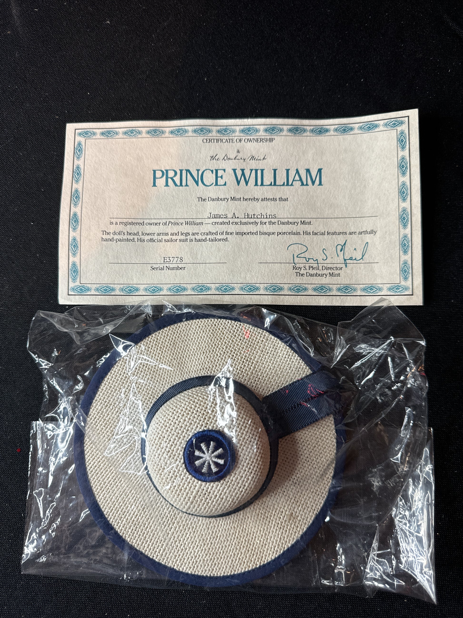 Vintage 1980's Prince William The Royal Wedding 11" Doll w/ Stand & Certs Danbury Mint No Box