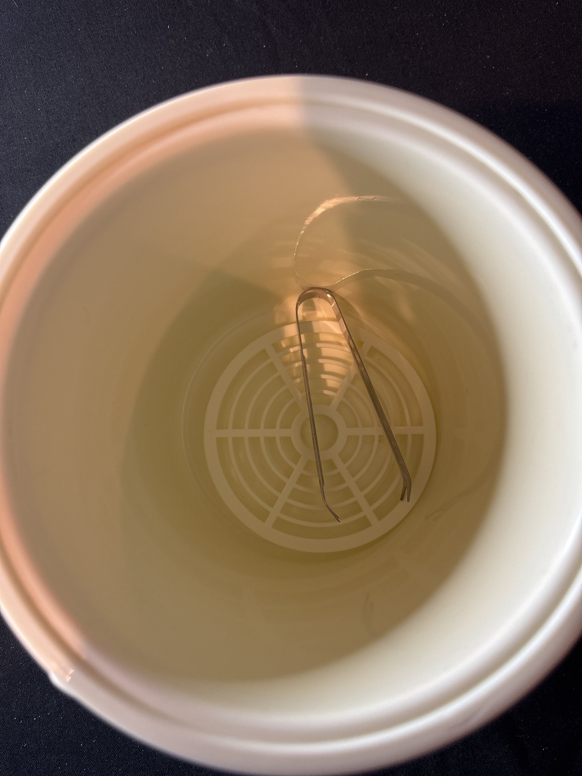 Vintage 3 Quart Phoenix Ice Bucket Gold & Aqua Stripes With Lid, Strainer & Tongs 8" Tall. Excellent condition with very minor markings on outside. Inside is like new.