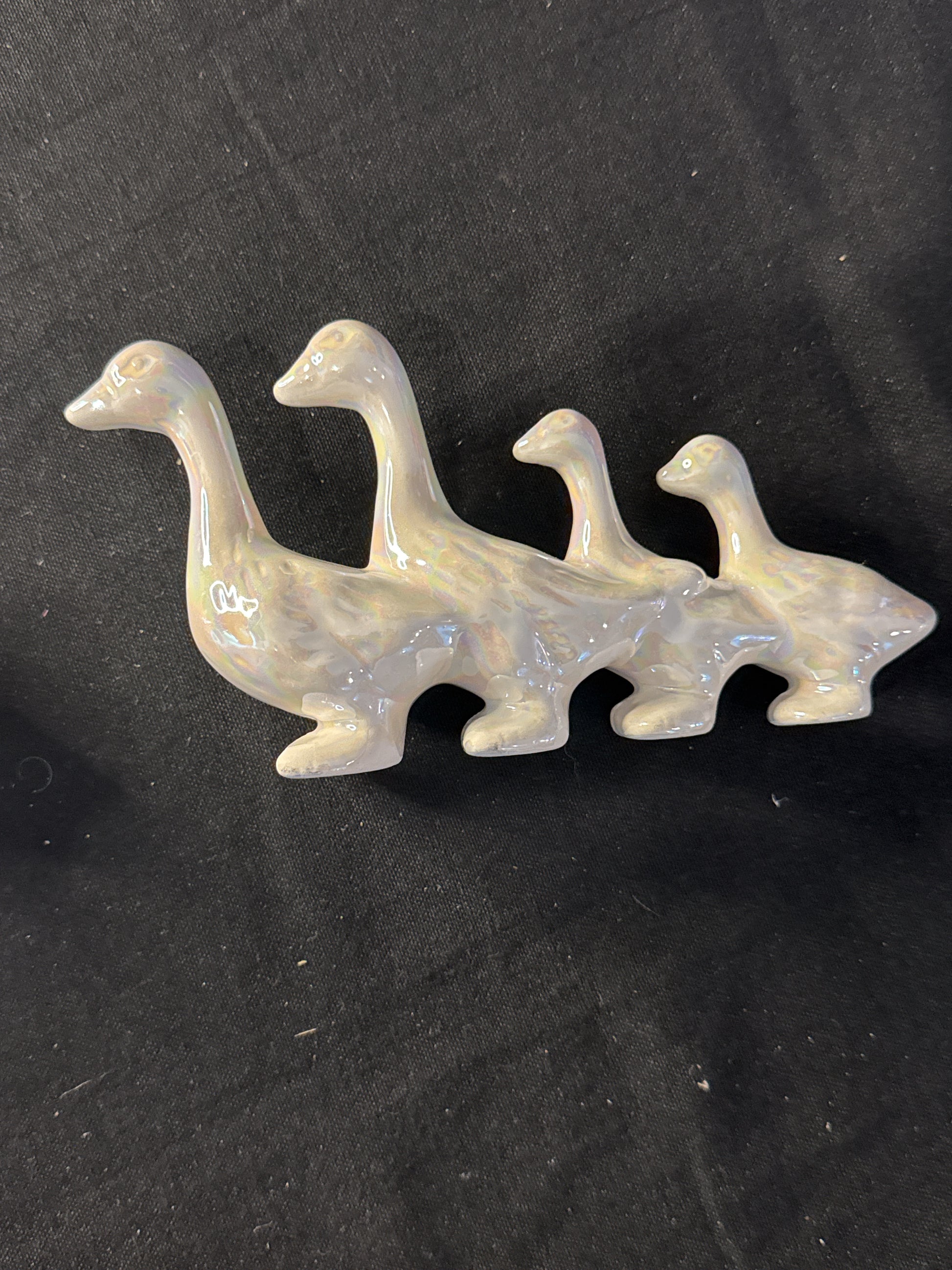 Vintage 4 Geese in a Row Iridescent Set of 2 7" Long and 3.75" Tall at the highest Goose.