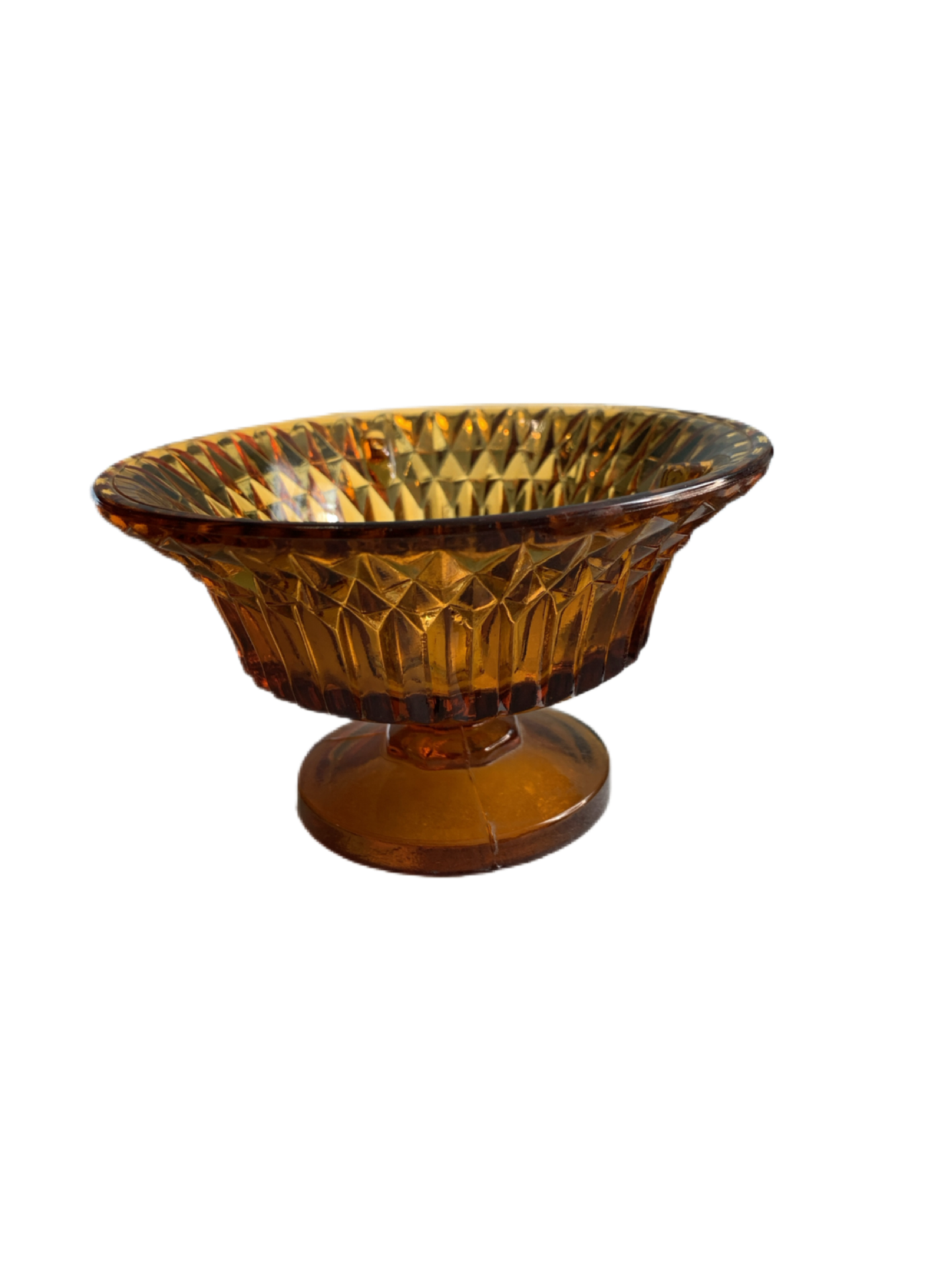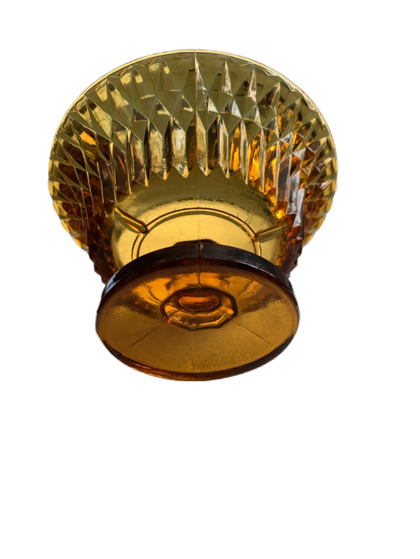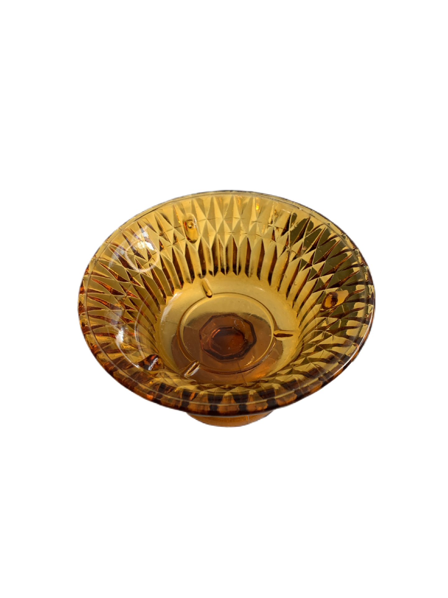 Vintage Amber Candy Dish Scalloped Edge Pedestal Footed Candy Dish. Excellent condition, no chips or cracks. Size: 5" wide, 3" hight, 2.5" base.