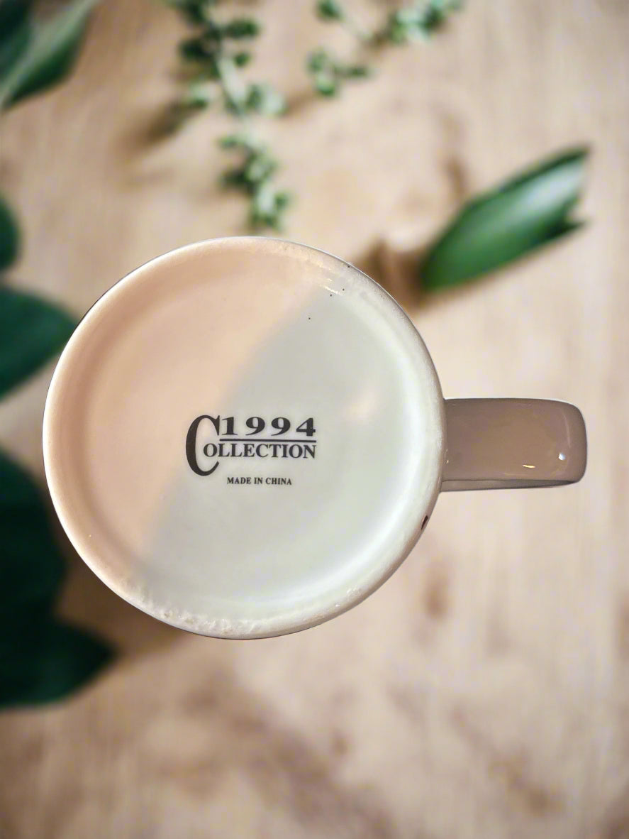 Vintage Christmas 1994 Collection Seasons Greetings Santa & Reindeer Coffee Mug Cup 4" Tall