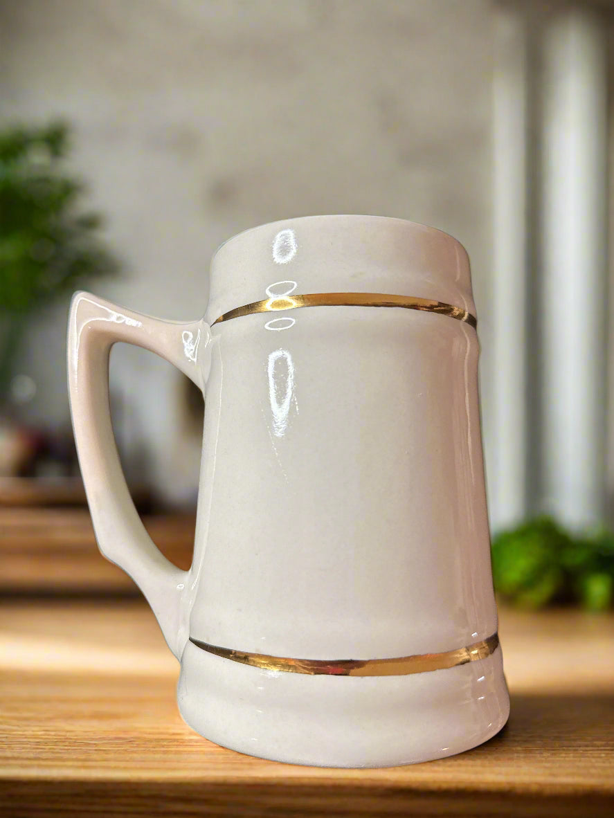 Vintage Early 1980s Dallas Cowboys NFL Large Ceramic Mug White Gold Trim 6" Tall. 16oz. Excellent condition, no chips or cracks. No brand on bottom.