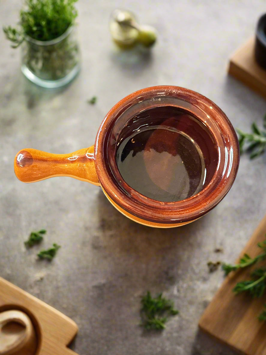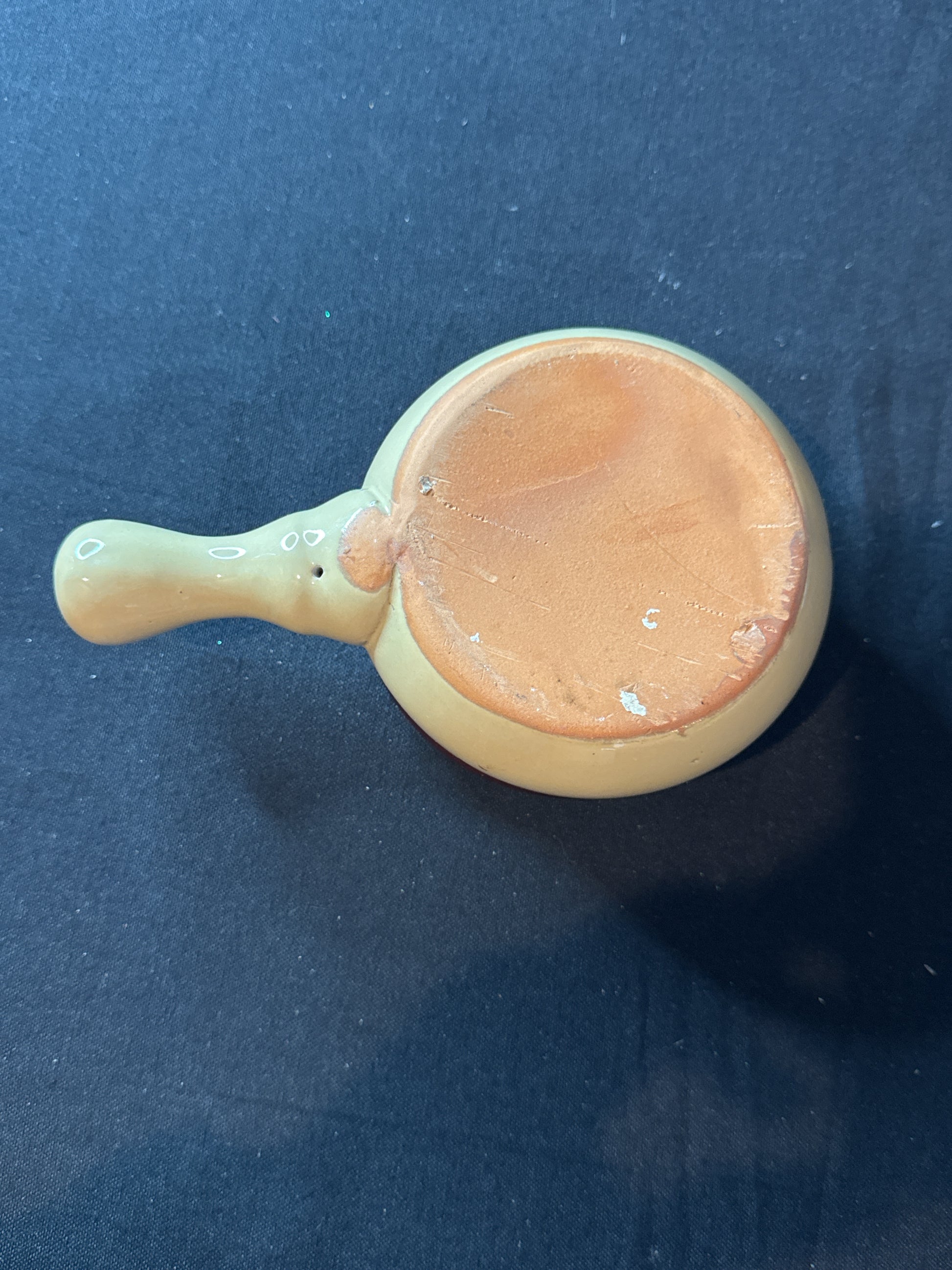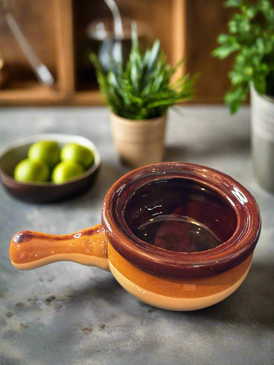Vintage French Onion Soup Bowl Soup Crock Bean Pot 8" To Handle 4.5" Wide 2.75" Tall