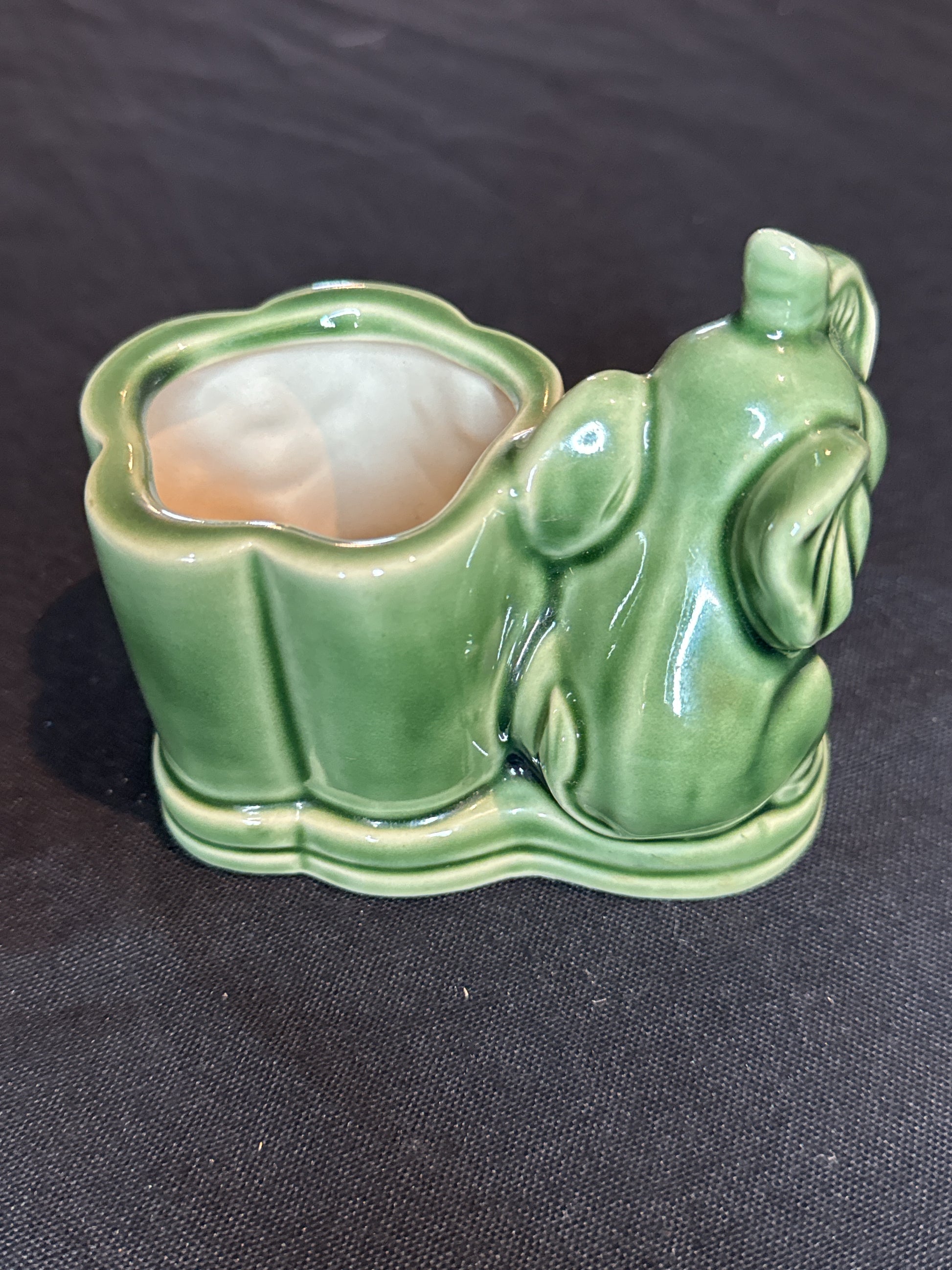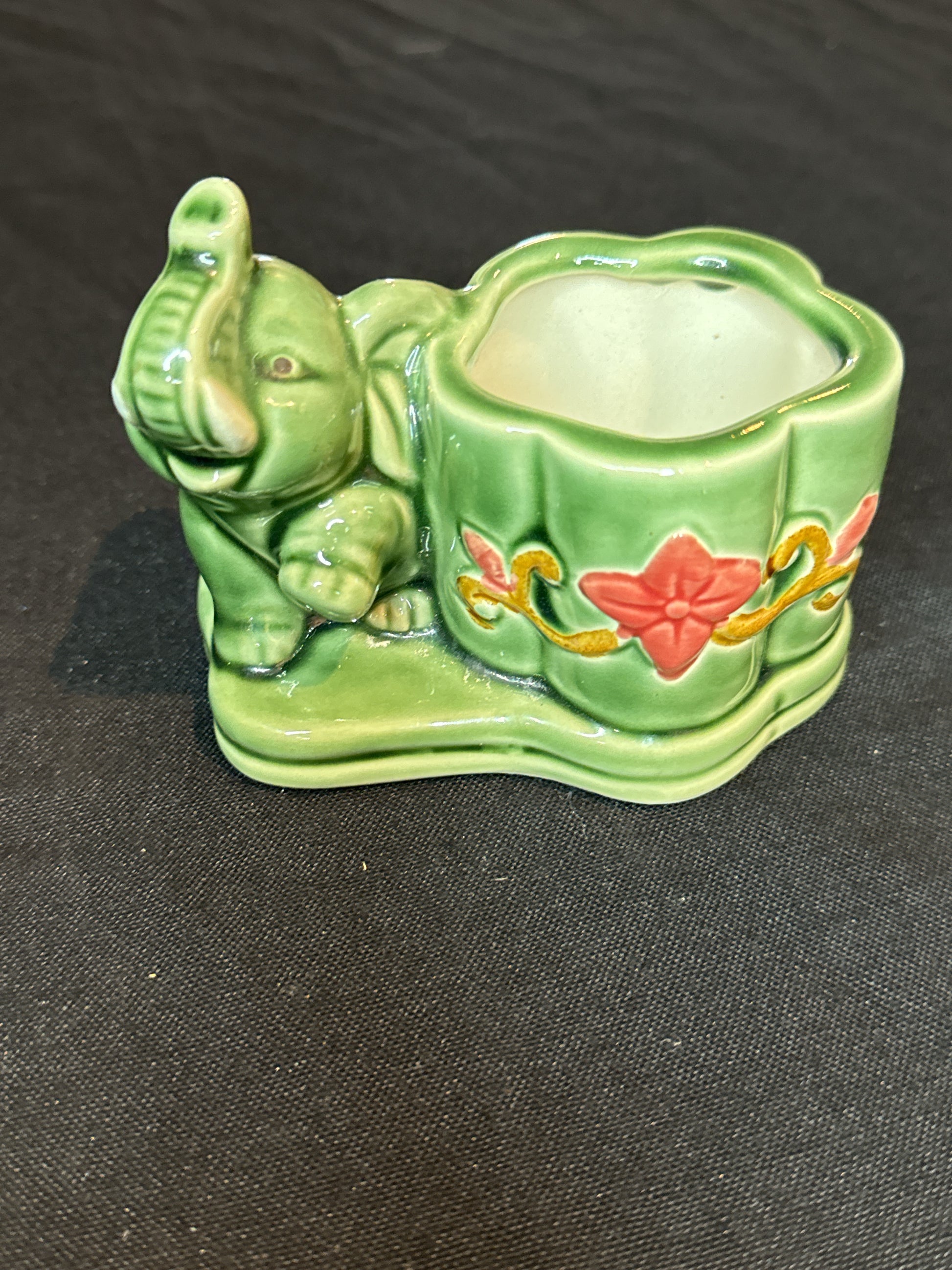 Vintage Glazed Majolica Elephant Planter Holder Green 3.5" Tall at Trunk