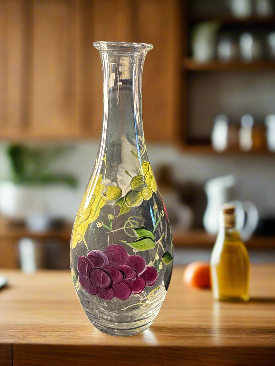 Vintage Hand Painted Wine Decanter 12" Tall Grapes