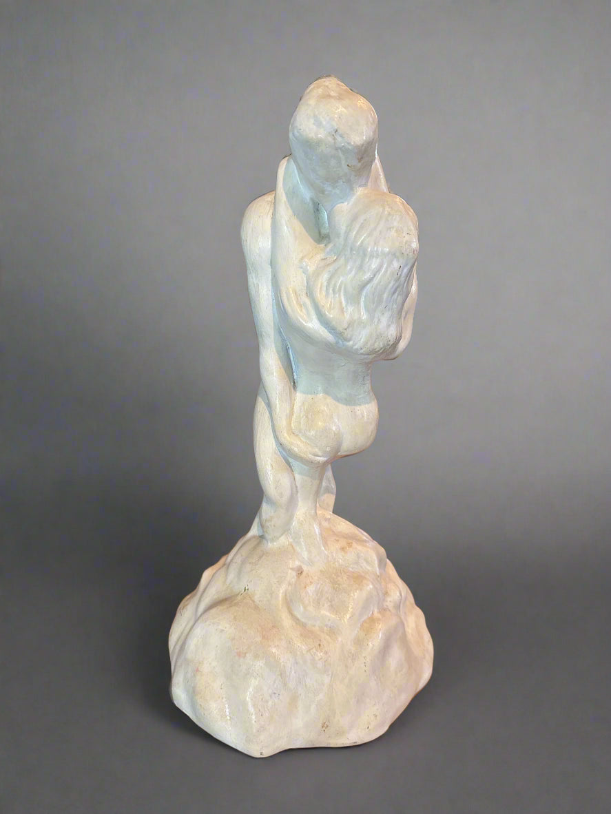 Vintage Lovers Erotic Naked Man & Woman Embracing Ceramic Statue 16" x 8"